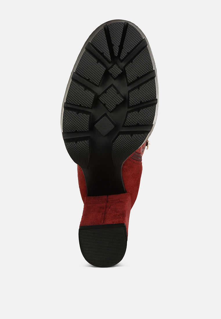 A winter perfect shoe is here. Our Maple Faux Suede Long Boots is the answer to all your winter shoe problems. These gorgeous-looking platform boots have sturdy lug soles and front paneling. It comes with a slightly padded insole and a side zipper for easy access. With style being a plus it even gives you the warmth and comfort of a woolen blanket. For a cold winter day, these heeled boots will be the hug your feet always wanted, not to mention the stand-out style will heat the outside as well with its hotness.