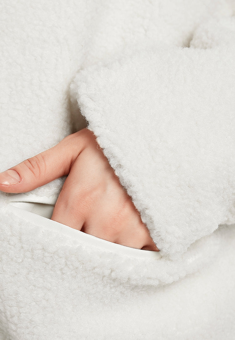 You won’t want to take this off—it’s crafted from the coziest fabrics in a versatile winter white that pairs with everything. The midi length provides maximum warmth, while the front button-front closure adds a classic style. With a soft weave, a relaxed oversized fit, elegant wide lapels, and easy slip pockets, this piece is perfect for both off-duty and dressed-up looks.