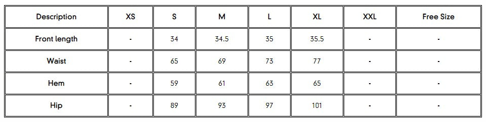 Shorts Size Chart